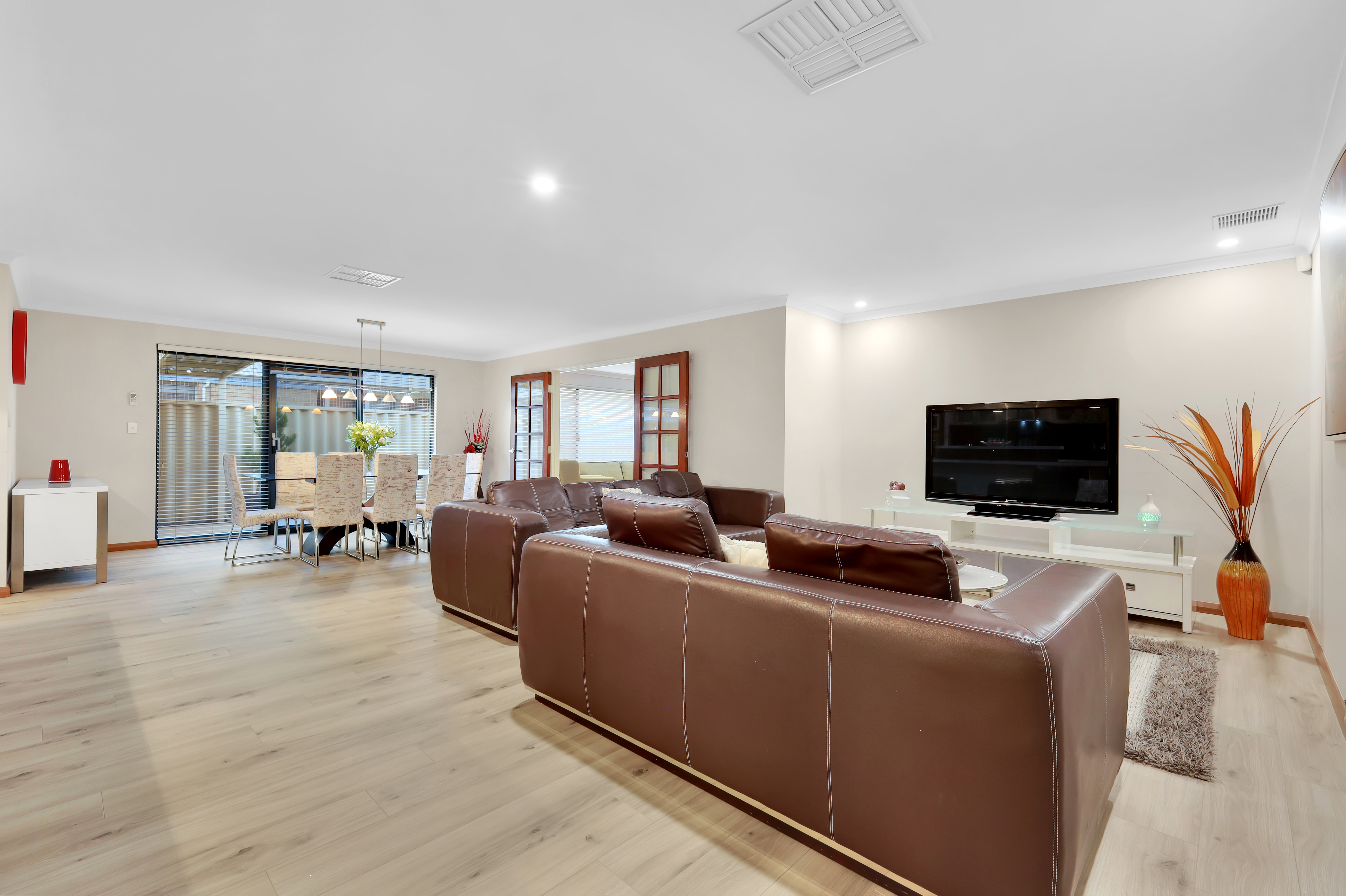 Open-plan living and Dining Area The heart of the home is the expansive open-plan living and dining area, designed to provide the ultimate space for family time or entertaining guests. With large windows, the area is bathed in natural light, creating a bright and welcoming atmosphere. The neutral decor allows you to add your personal touch easily.