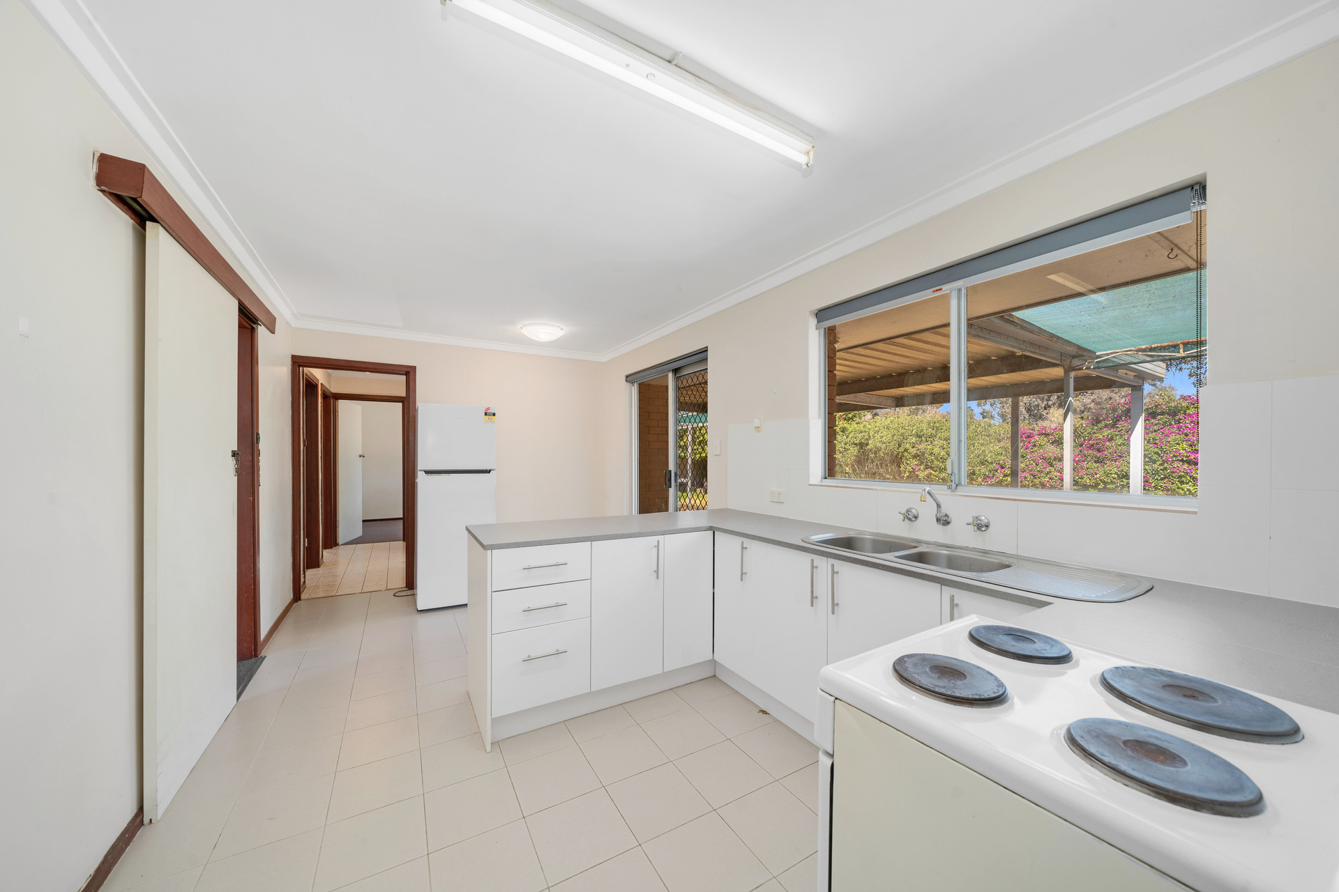 All the bedrooms are graciously sized, and the master bedroom is impressively spacious, all of which are serviced by the stylish main bathroom with a shower and bath. Outside, a large overhead patio overlooks the garden, or for the astute investor, a future home!